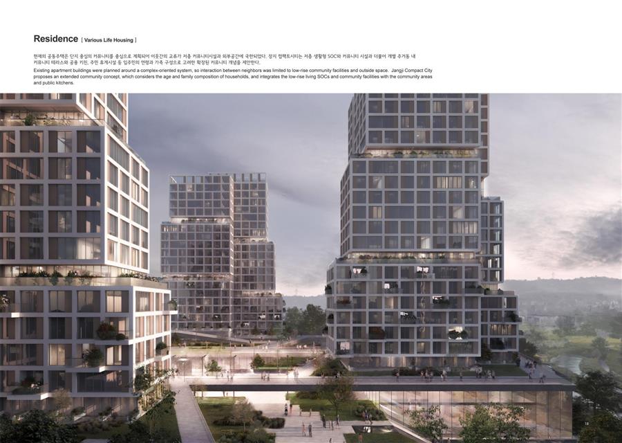作为复杂城市空间创新项目的一部分,首尔市规划了8万套公共住房计划,这些竞赛在Gangil,Jangji和Sinnae等每个街区产生了创新的建筑设计。总体规划主要创建公寓、幸福住宅、自给自足的公共设施,试图激活区域发展。计划于2021年开始,2024年完成,整个立体项目将有助于启动和连接整个城市。