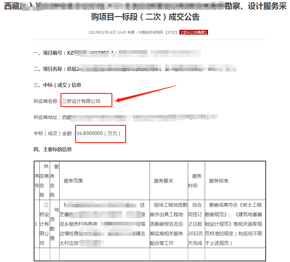 前几天我们在西藏投了一个勘察的标,今天我们获得了中标的好消息,项目设计费16.89万。我们勘察资质今年才拿证,现在就中了一个标,现在只是开始,未来我们将会有越来越多的业绩来壮大我们的实力!